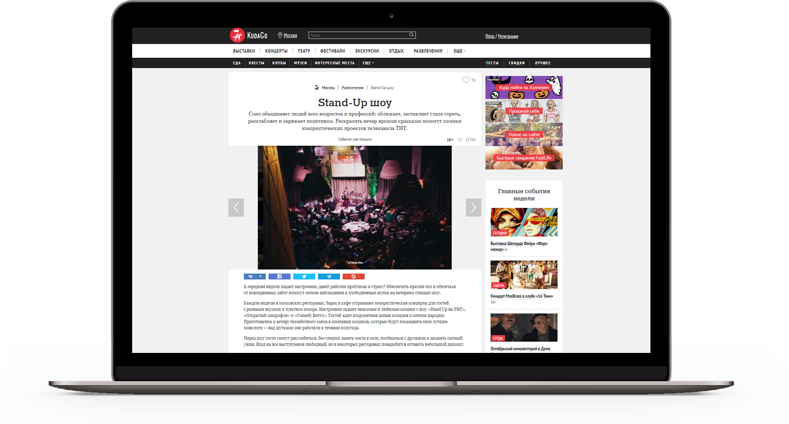 На сайте KudaGo был подготовлен анонс мероприятия, который посмотрело 1 054 человек. Анонс содержит в себе информацию о месте, время работы и стоимость посещения.