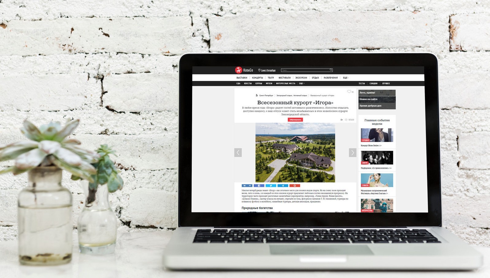 На сайте был подготовлен анонс курорта, который рассказывал пользователям о всех преимуществах отдыха на природе в формате лонгрида, были указанный ссылки на сайт и группу ВКонтакте, а также раздел с новостями и кнопка «Забронировать».