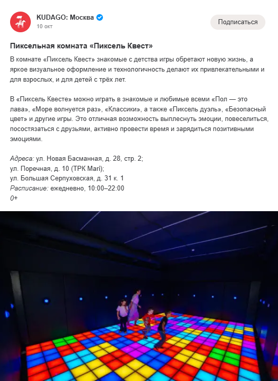 Pixel Quest — это пиксельные интерактивные развлекательные комнаты на территории всей страны. Они есть не только в столицах, но и в регионах. В комнате есть игры разного жанра, например, пол - это лава.