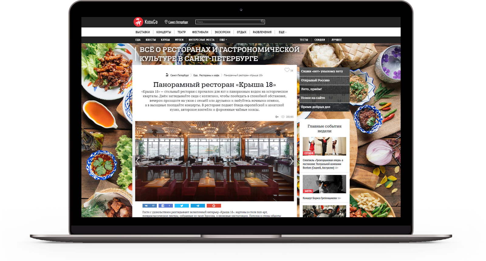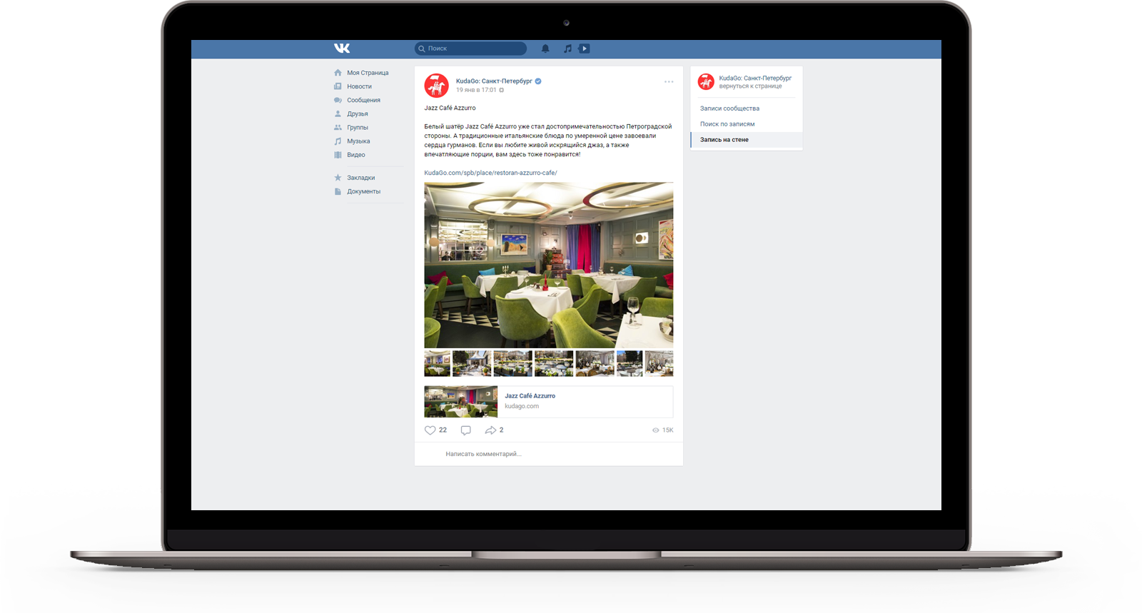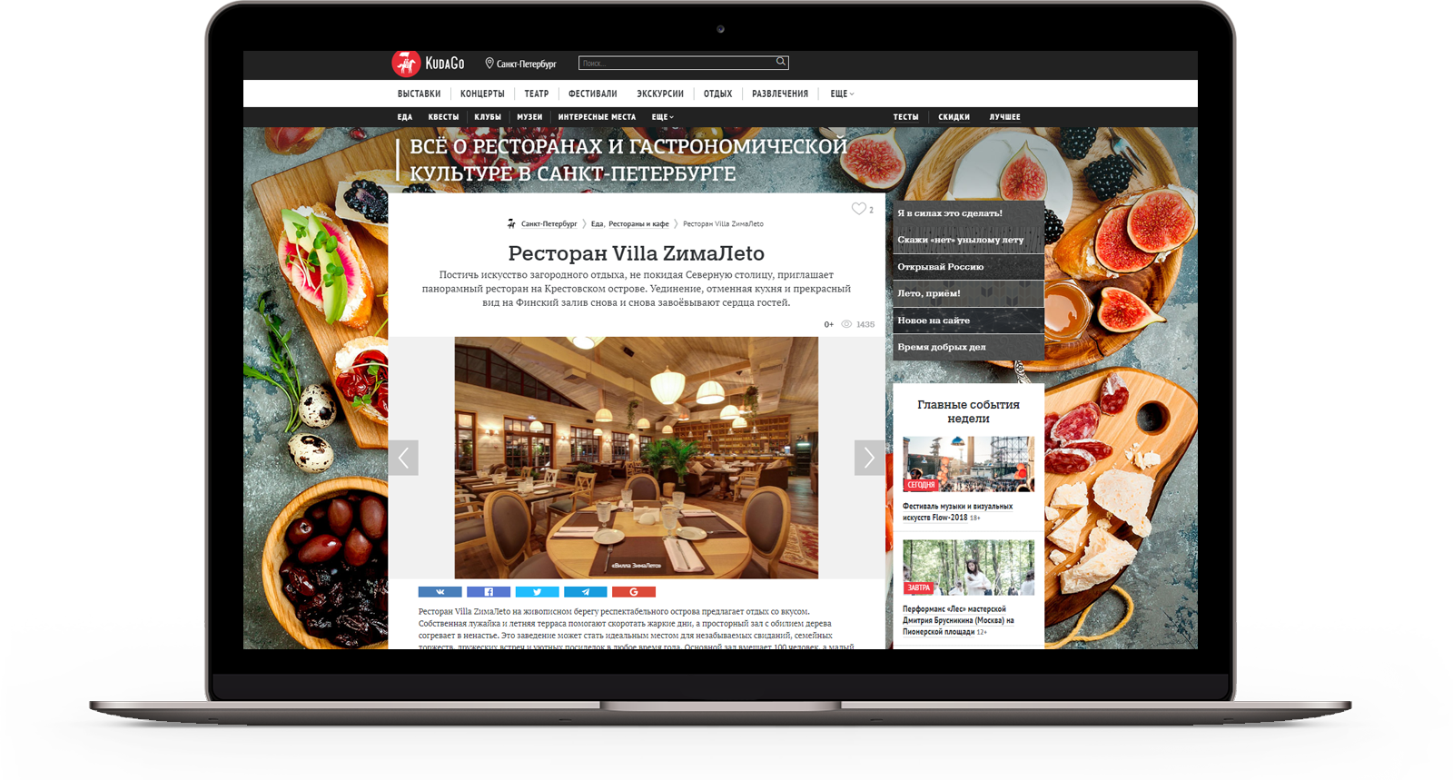 Страница ресторана «Azzurro», который славится своими вечерами джазовой музыки, была закреплена на сайте KudaGo Санкт-Петербург в разделе «Рестораны» на протяжении двух недель. Также был опубликован один пост о заведении в группе KudaGo Санкт-Петербург ВКонтакте и 7 постов о джазовых концертах в «Azzurro». За время рекламной кампании страница ресторана собрал 7 242 уникальных просмотра. Однако, ресторан ожидает ребрендинг, поэтому страница в скором времени будет изменена.